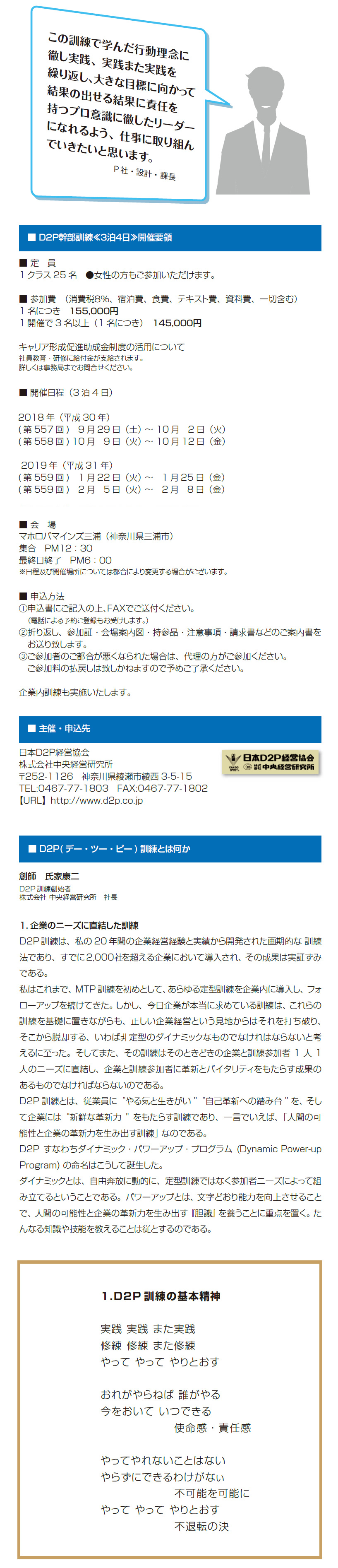 企業セミナー・コンサルティングは日本D2P経営協会・中央経営研究所におまかせください。